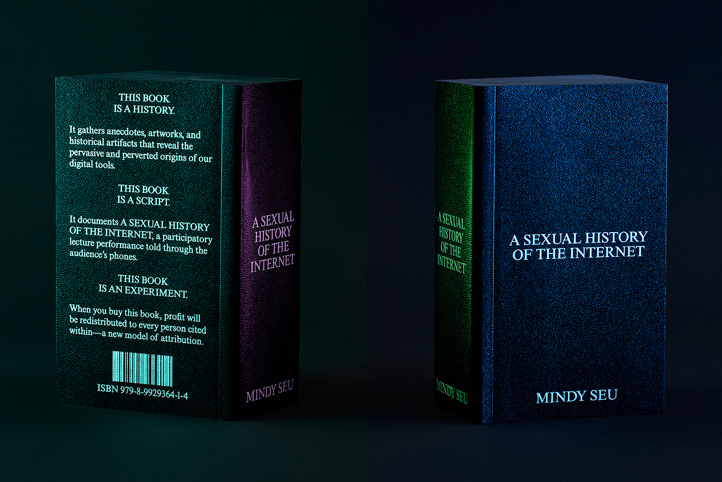 The book is a follow-up to Cyberfeminism Index, also created by Mindy Seu and designed by Laura Coombs. It’s designed to “feel like an iPhone, a little black book, and serve as a facsimile of the performance”. In the performance, the audience reads along from their phones in a dimly lit room.